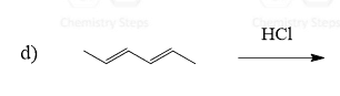 When working with unsymmetrical dienes, protonate the double bonds such that resonance-stabilized carbocations are generated. The addition of the halide to these carbocations leads to the major products.