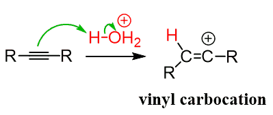 This is followed by a nucleophilic attack of the vinyl carbocation by the water: