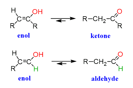 Enols are generally unstable and rearrange into ketones (internal) or aldehydes (terminal OH) as soon as they are formed: