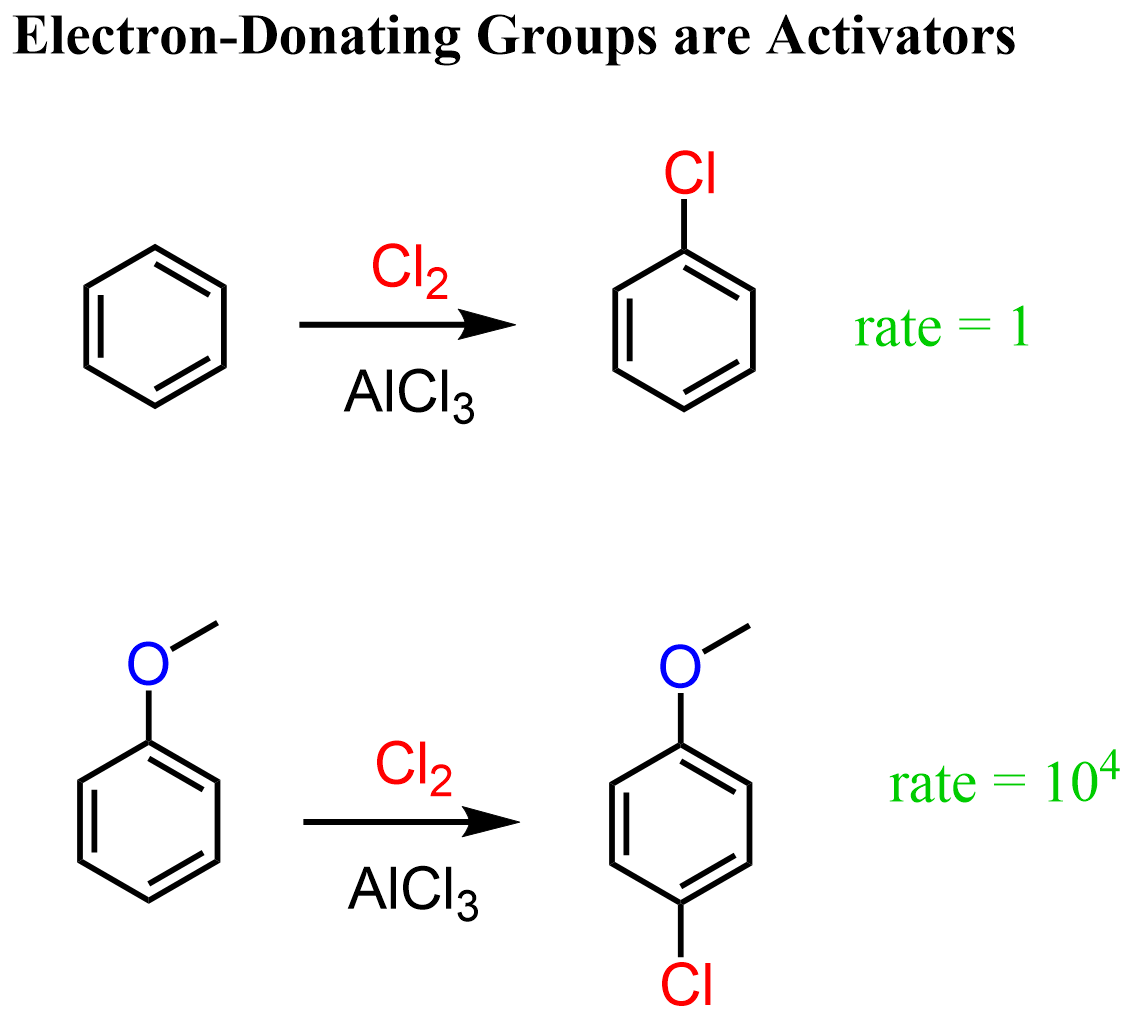 Therefore, the more electron density we supply to benzene, the more reactive it becomes in EAS reactions.