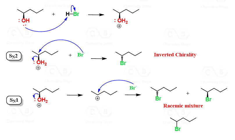 Secondary alcohols can undergo SN2 and SN1 reactions with SN1 being the predominant pathway, so if you want to have control over the stereochemistry of the reaction, the second approach, which we will discuss in more detail below, will definitely be more beneficial.