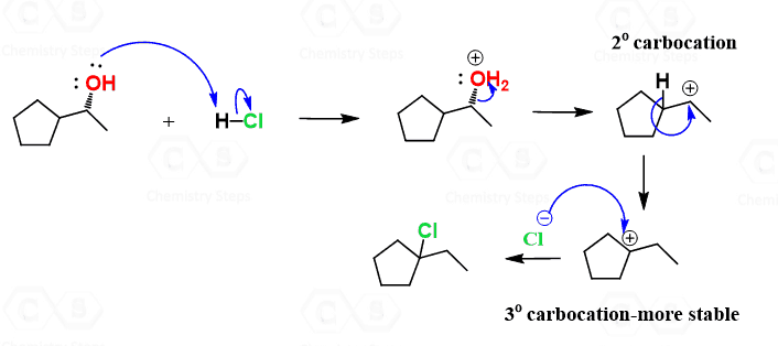 Keep in mind the possibility of rearrangements in SN1 reactions which is one reason why the SN1 pathway predominates in 2° and 3° alcohols: