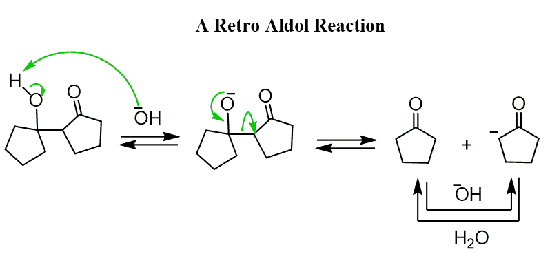 When the β-hydroxy carbonyl is heated up in the presence of a base, an elimination reaction, called E1CB, occurs and a ɑ, β-unsaturated carbonyl compound is formed: