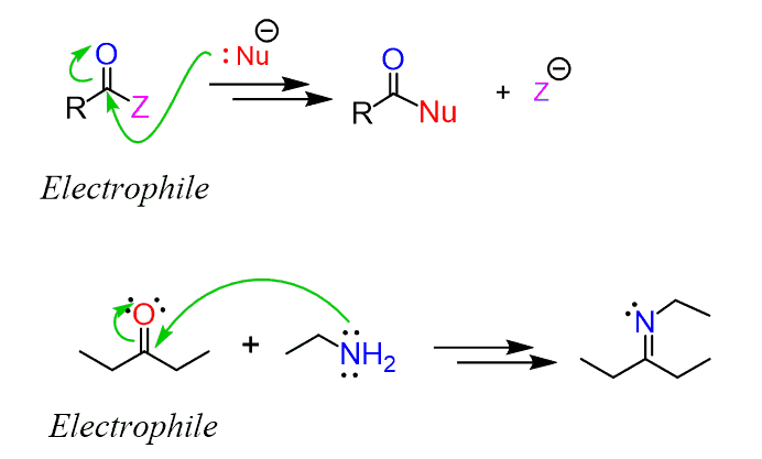 Examples are all the addition reactions of aldehydes and ketones, the nucleophilic acyl substitutions of carboxylic acid derivatives.