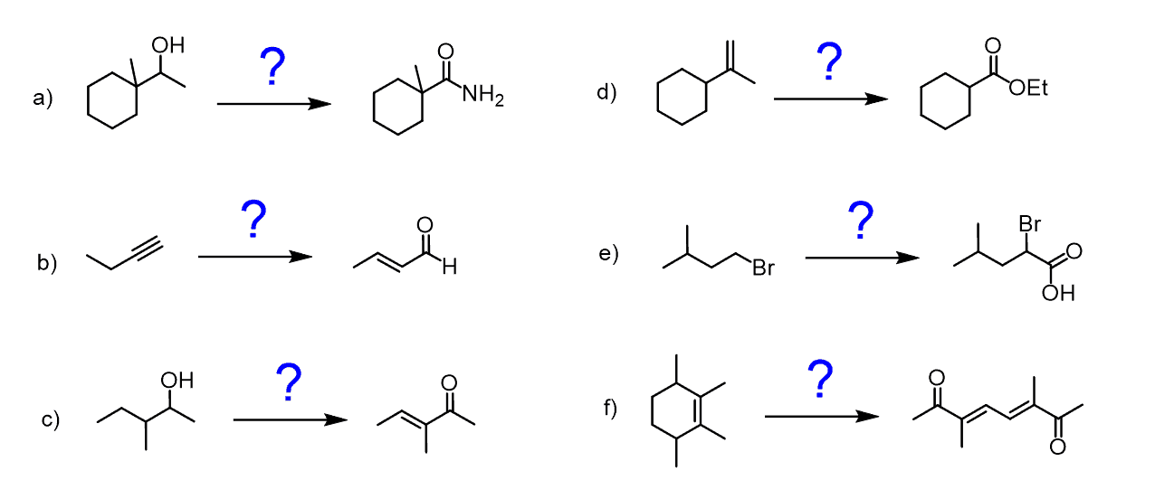 Propose reagents to achieve the following synthetic transformations. There is more then one step needed and there is at least one of doing through alpha halogenation of an enol or enolate.