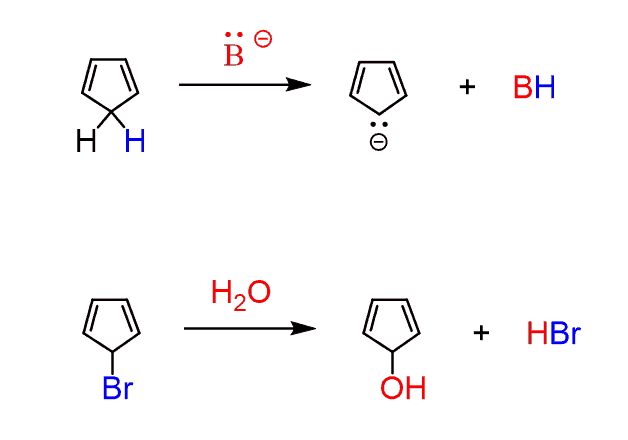 This was about the stability of the cyclopentadiene anion explained by the fact that it is aromatic. Let’s now go back and figure out why the following reaction is unusually slow: