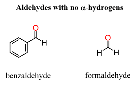 Now, what happens if we add a base to an aldehyde does not have ɑ hydrogens? For example, benzaldehyde or formaldehyde: