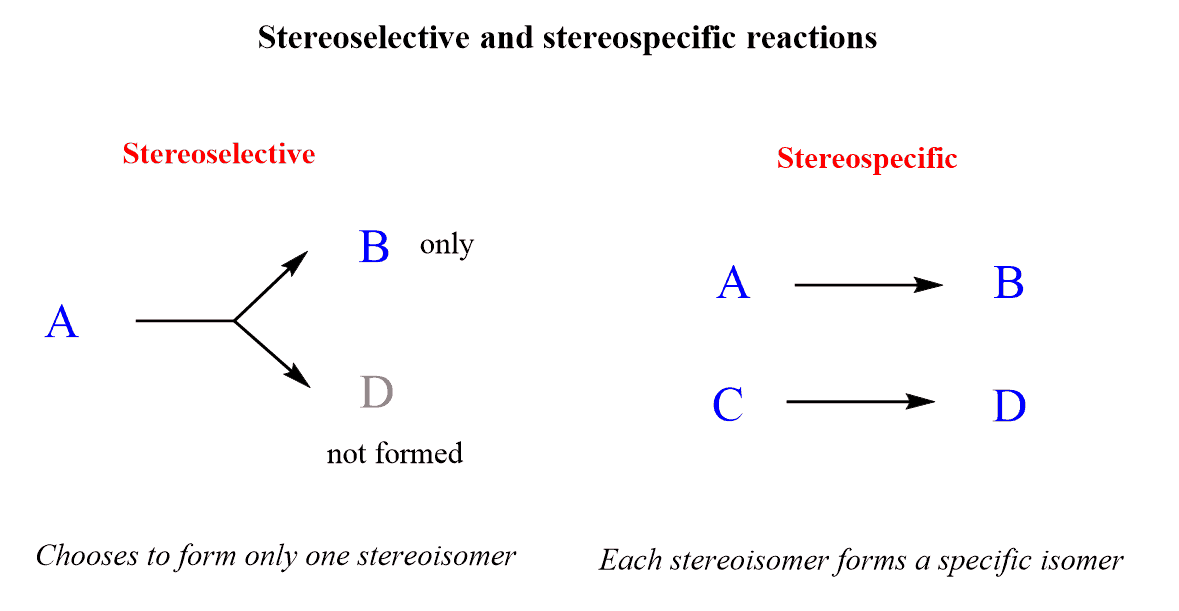 Many addition reactions to alkenes are stereoselective since one (set) of stereoisomers is formed from a starting material that is not stereoisomeric. For example, the bromination of cyclohexene forms two enantiomers of trans-1,2-dibromocyclohexane. The cis-dibromo isomer is not formed, and we can say that the reaction selects/chooses to form one set of stereoisomers over the other one.