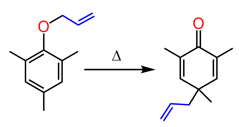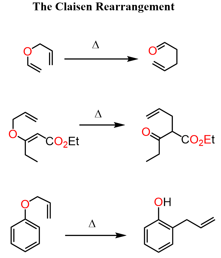 For example, here are some Claisen rearrangements where we can clearly see the final product containing the carbonyl group.