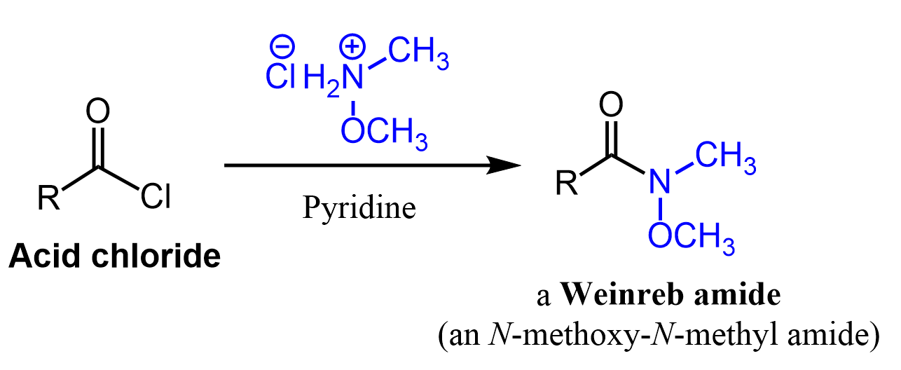 Weinreb amide which are most often prepared by a nucleophilic acyl substitution of acid chloride.