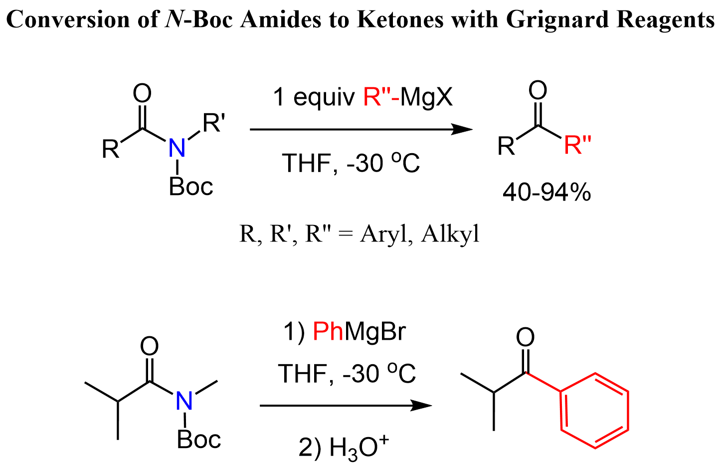 Another interesting approach was reported recently where N–Boc amides are converted to ketones with Grignard reagents.