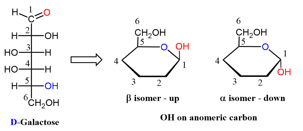 For example, let’s convert D-Galactose into β-D-Galactose pyranose in the Haworth and chair forms.