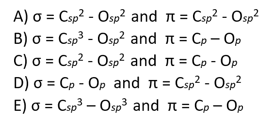 Which combination of orbital overlap describes the formation of the C=O bond in the following compound?