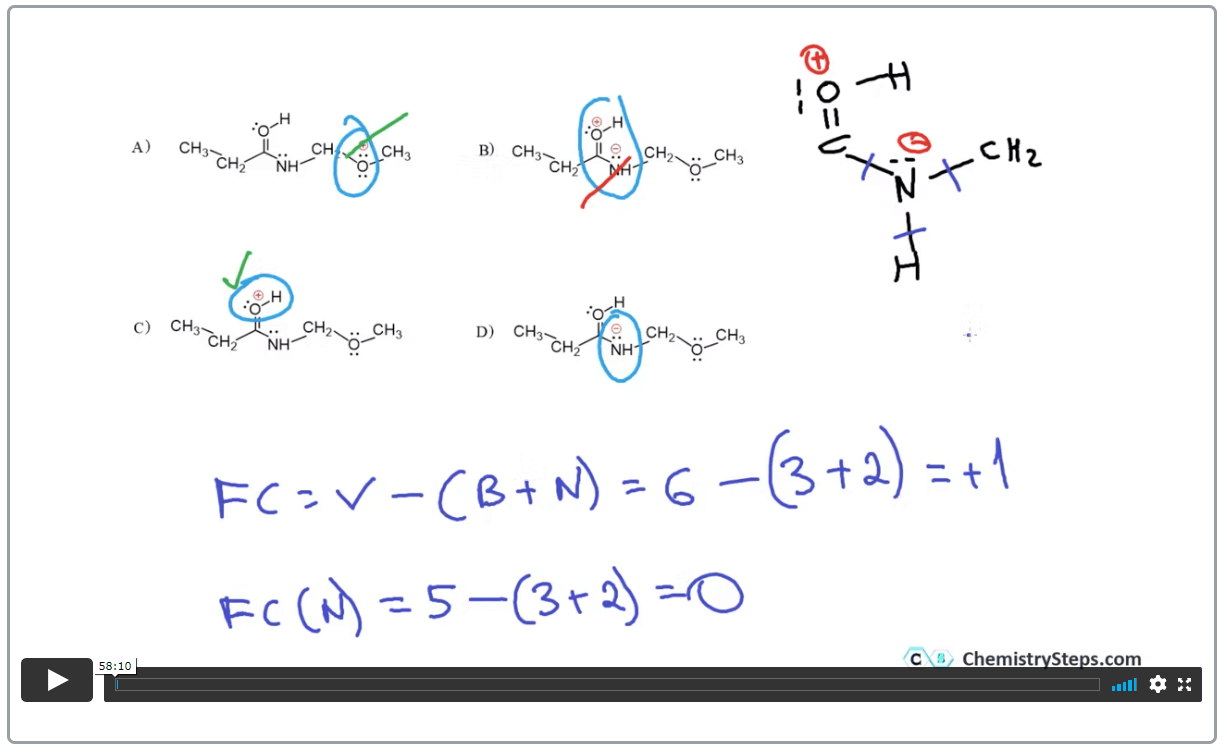 - The formal charge shows the imbalance of the electrons that the atom “owns” and shares when making a chemical bond. You can use a formula to calculate it, or the better alternative is practicing it till recognizing the bonding and number of lone pairs for the main elements in organic chemistry becomes natural. Here is an example question: