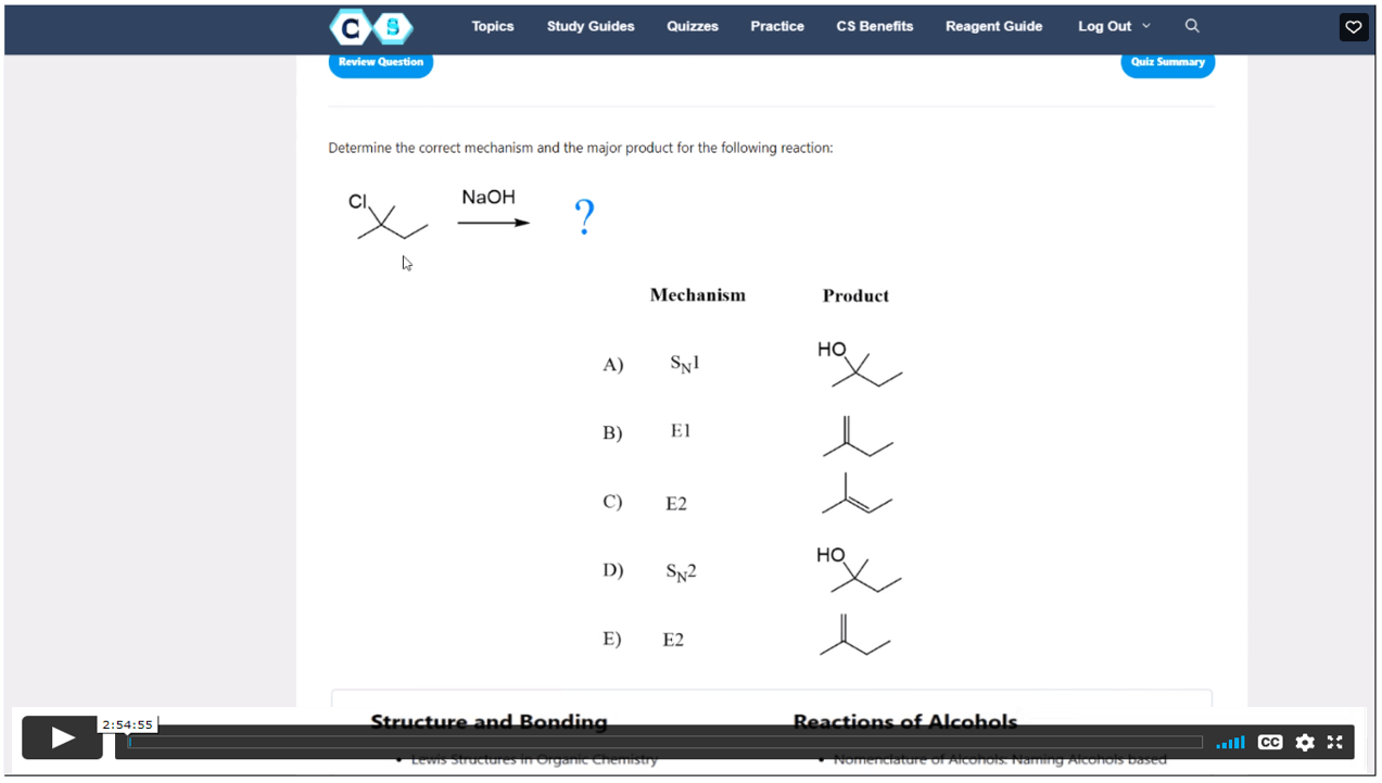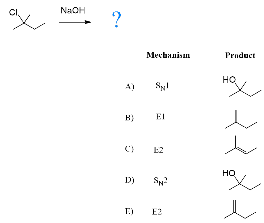 Substitution and elimination reactions are perhaps the main and most challenging types of reactions we cover in a typical organic chemistry 1 course. This quiz is built to include the most important concepts encountered in this topic. You can test your knowledge on naming alkyl halides, understanding the kinetics of unimolecular (SN1, E1) and bimolecular (SN2, E2) reactions, recognizing common leaving groups, protic and aprotic solvents and their effect on the outcome of the reaction, choosing between SN1, E1, SN2, and E2 reaction, designing synthesis using a set of given substrates and reagents.