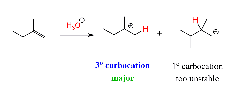 Remember, more substituted carbocations are more stable because of the hyperconjugation and electron-donating nature of alkyl groups.