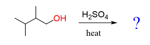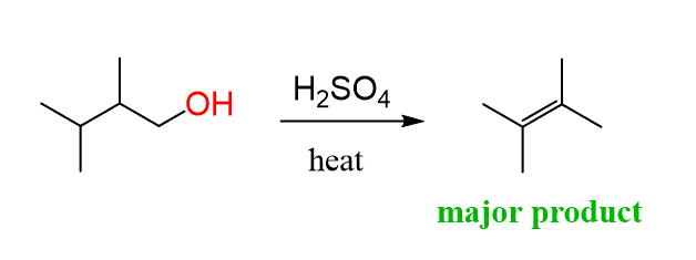 For example, the following alcohol is expected to form a trisubstituted alkene as the major product when treated with concentrated sulfuric acid: