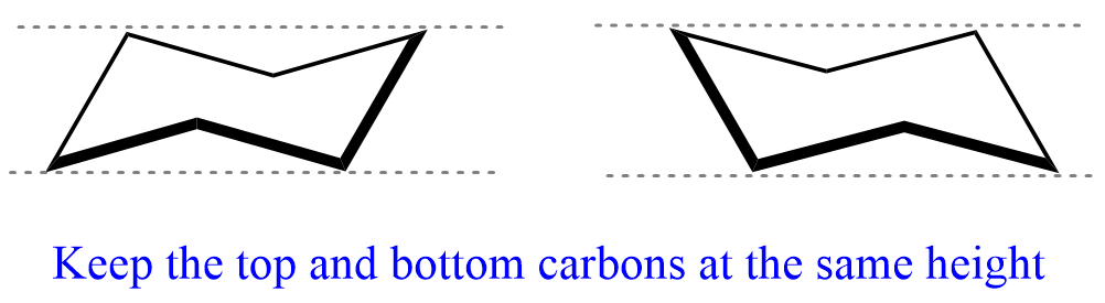 - Try to keep the upper and bottom carbon atoms within two parallel lines: