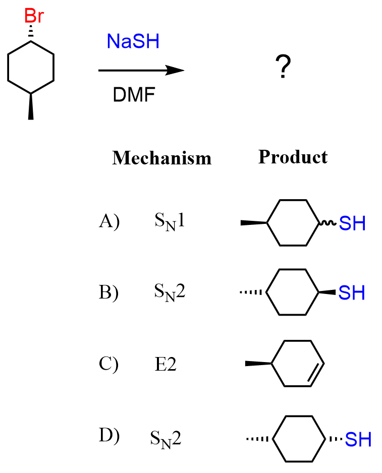 If you need to practice, there are more of these types of questions in the multiple-choice quiz on substitution and elimination reactions.