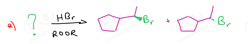 This is called anti-Markovnikov, free radical addition to an alkene, and is only efficient when the HBr is used. Let’s see how this happens.