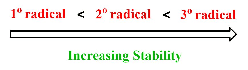 Remember that, just like for the carbocations, radical stability increases with the degree of substitution: