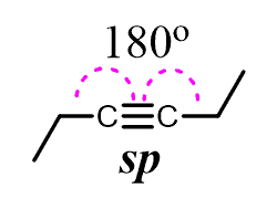 The hybridization of triple-bonded carbons is sp which corresponds to the liner geometry – 180o: