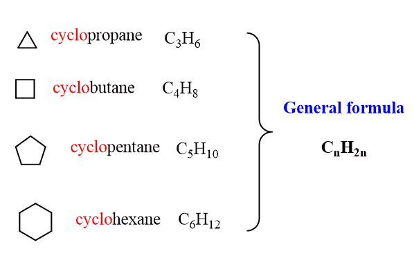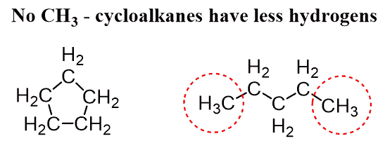 One important difference is the change of the general formula to CnH2n as there are no terminal CH3 groups: