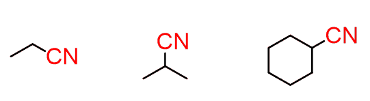 Alkyl groups together with the -CN (cyano) group make the nitriles: