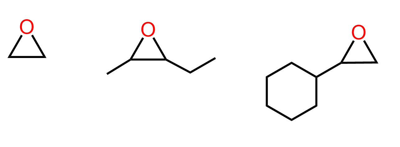Epoxides are three-membered cyclic ethers with an oxygen atom bonded to two adjacent carbon atoms.