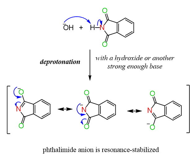 The N–H bond of the imide, being between two electron-withdrawing carbonyl groups, is quite acidic (pKa ~ 8.3). So, to convert the nitrogen into a better nucleophile, it is first deprotonated by a hydroxide or another strong enough base: