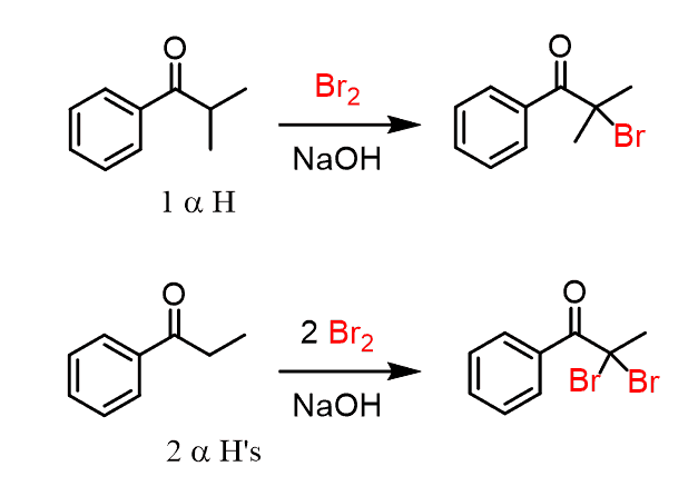 We know that base-catalyzed halogenation of aldehydes and ketones replaces all the ɑ hydrogens: