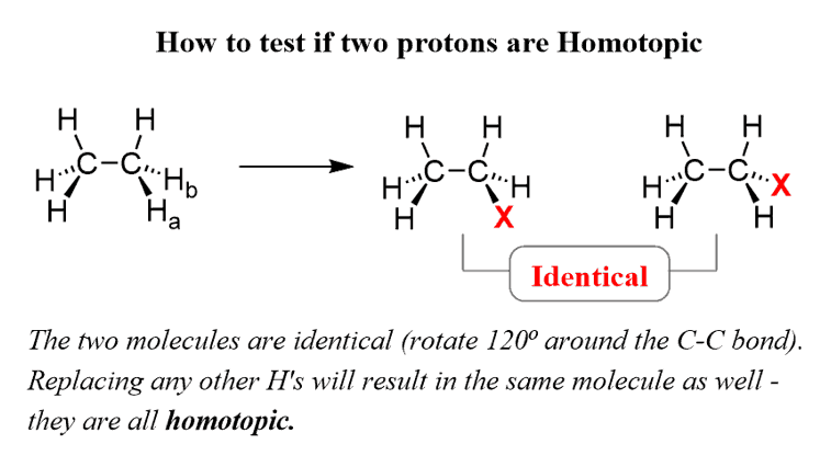 If replacing two protons with a different group (X) gives the same compound, the protons are called Homotopic.