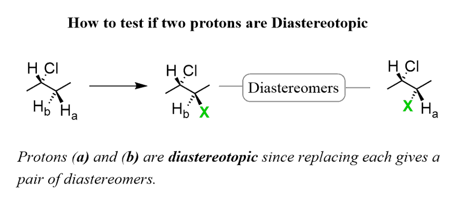 If replacing two protons with a different group (X) gives a pair of diastereomers, the protons are called Diastereotopic.