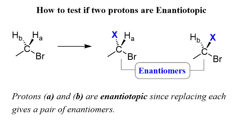 If replacing two protons with a different group (X) gives a pair of enantiomers, the protons are called Enantiotopic.