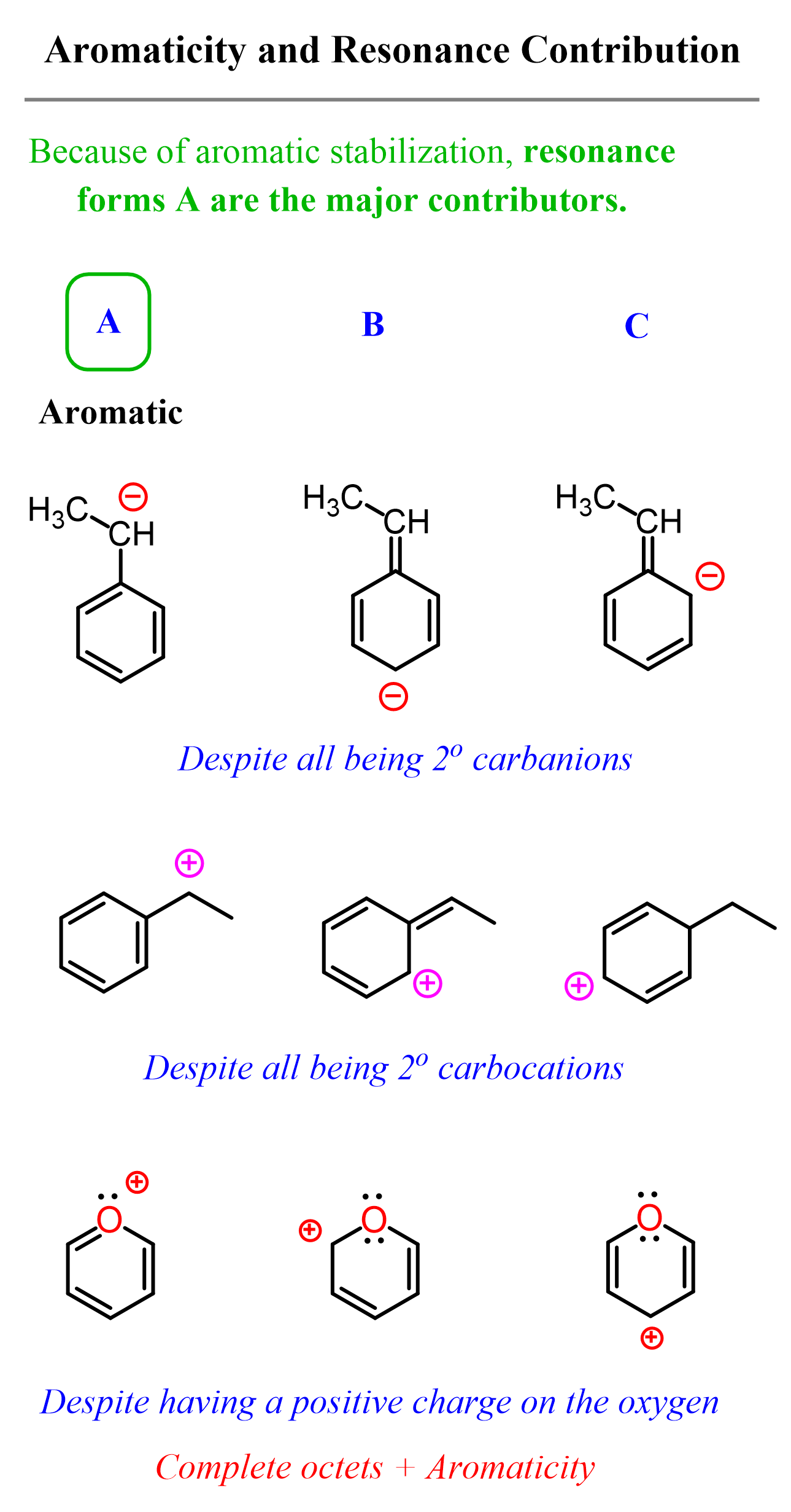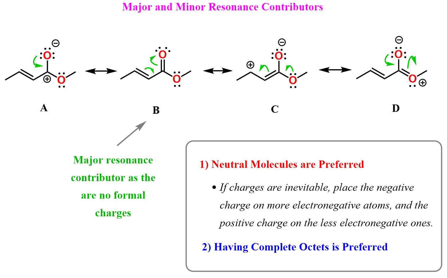 Let’s summarize what we learned about major and minor resonance contributors