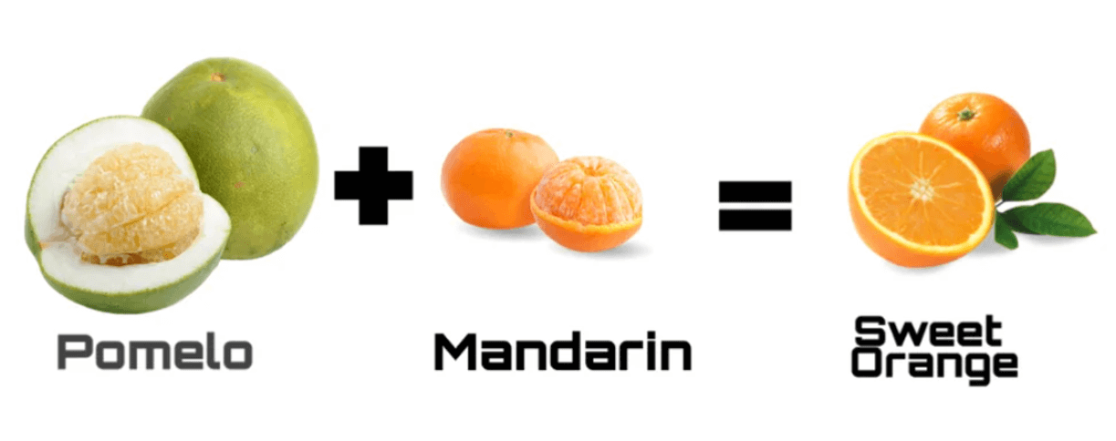 The sweet orange looks more like a mandarin than a pomelo, but that does not mean it exists as a mandarin most of the time. However, if someone asks you, “Oh, you bought some sweet oranges, what do they look like?”, you are going to say they look like mandarins. So, chemistry-wise, the term is “the mandarin is the major resonance contributor, and the pomelo is the minor resonance contributor.”