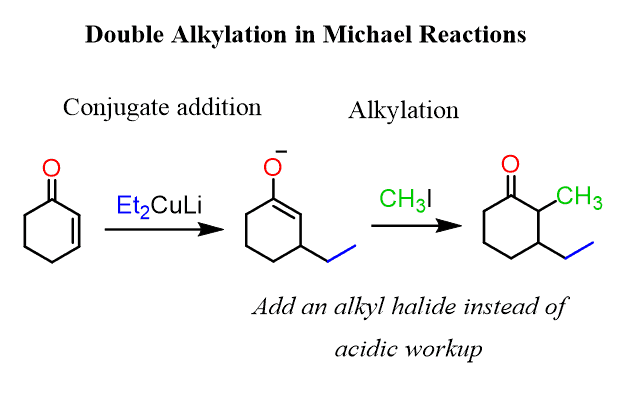 You may encounter a problem asking you to put two alkyl groups in a Michel acceptor: