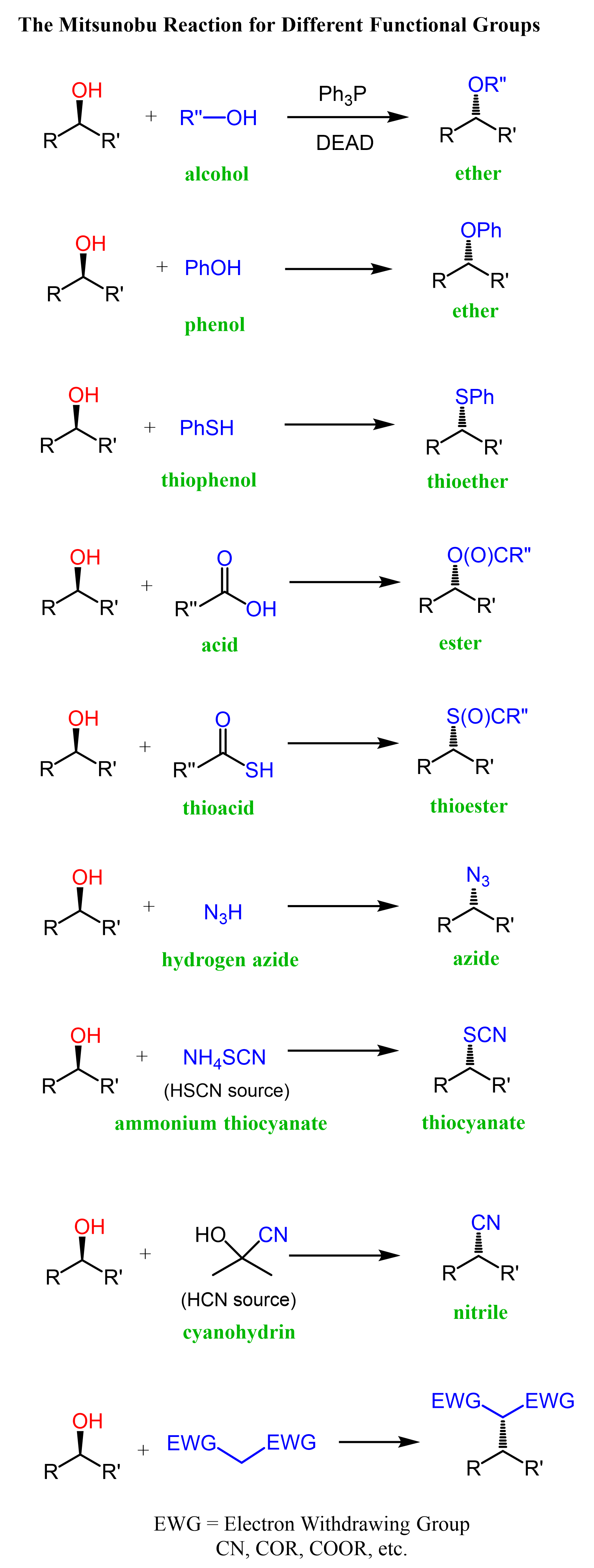 The Mitsunobu Reaction with Different Functional Groups
