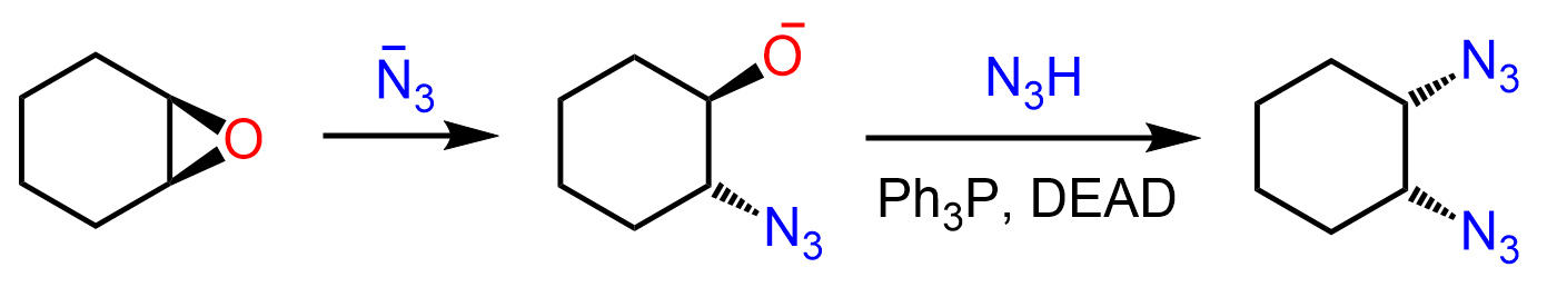 When an epoxide is used, two azide groups are added in a cis configuration: