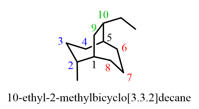 One question you may wonder is the zero in the brackets. This is to specify that there are only two rings and not three (zero carbons in the third ring). For example, we could have another bicyclic nonane with three joint rings: