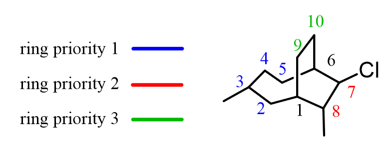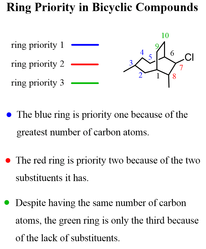 Let’s put this together as a summary for determining the ring priority on bicyclic compounds.