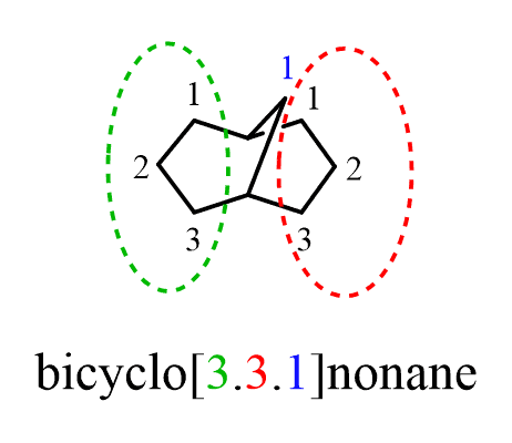 In the example above, we’d have bicyclo[4.3.0]nonane: