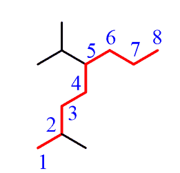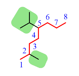 Notice that even though the isopropyl group is at position 5, it is still placed before the methyl group at position 2 since the substituents are placed alphabetically.