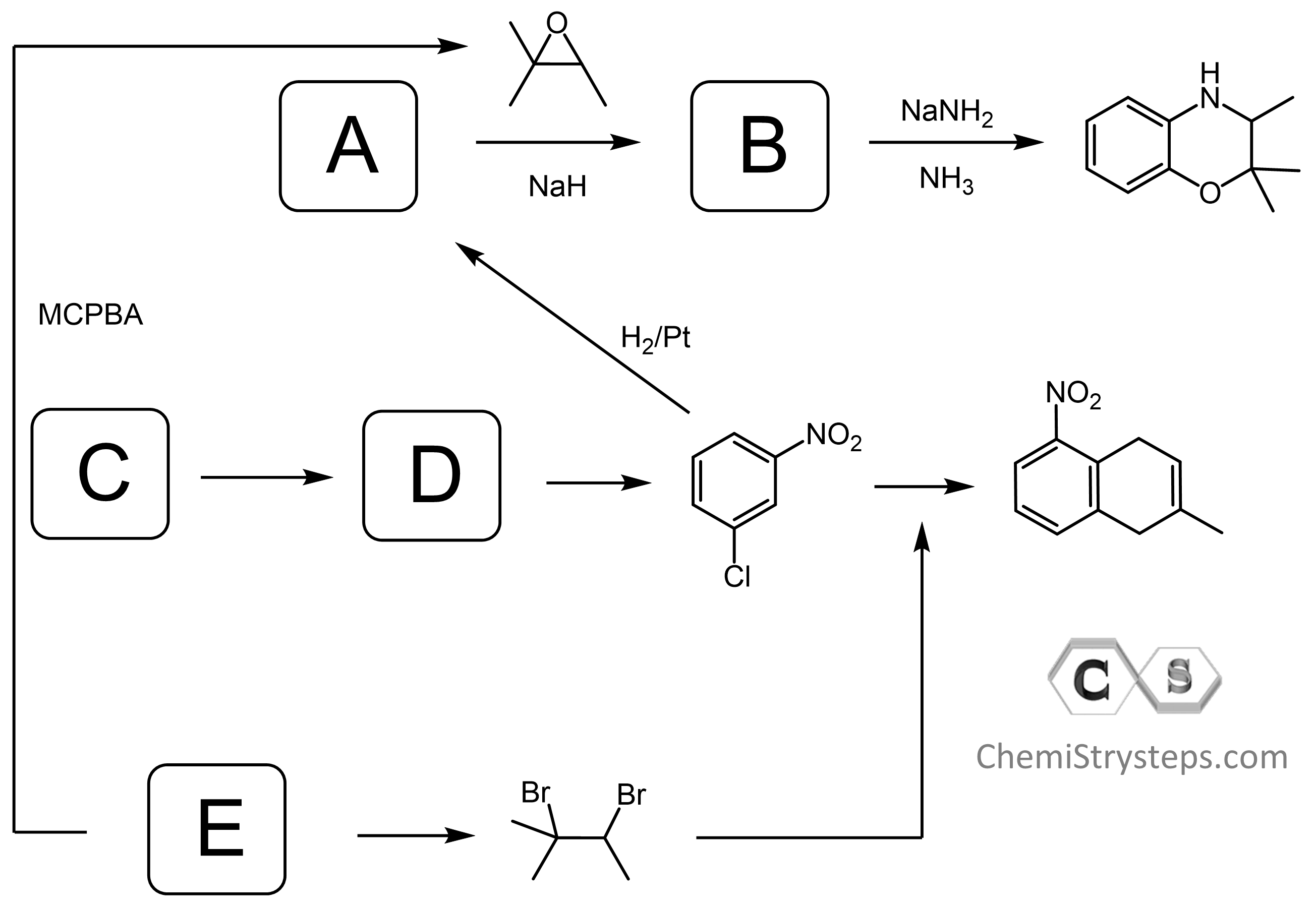 Draw the mechanism and identify the missing compounds in the following synthetic scheme: