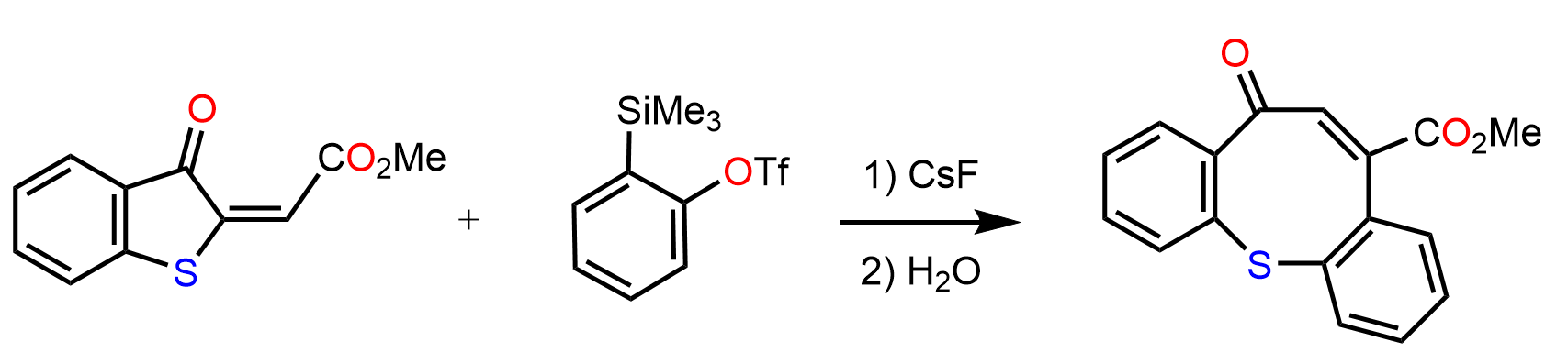 Draw a plausible mechanism for the following 3 + 2 (3 atoms + 2 atoms) cycloaddition (recall the Diels-Alder reaction) reaction that goes via in situ benzyne formation.