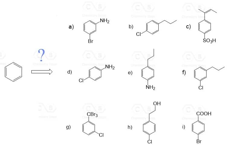 The order of reactions is very important! So, before every step, consider the ortho– , para– , or meta directing effect of the current group on the aromatic ring.