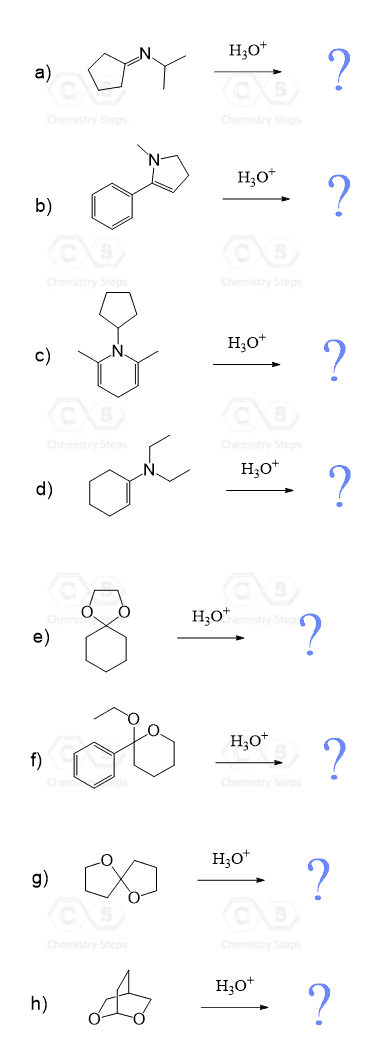 Predict the major product(s) obtained when each of the following compounds undergoes hydrolysis in the presence of an acid: