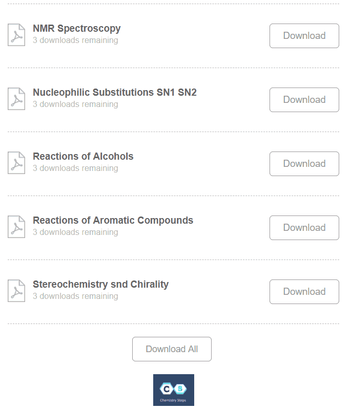 The study guides are protected by Copyright, and permission should be obtained from Chemistry Steps prior to any prohibited reproduction, storage in a retrieval system, or transmission in any form or by any means: electronic, mechanical, photocopying, recording, or likewise.