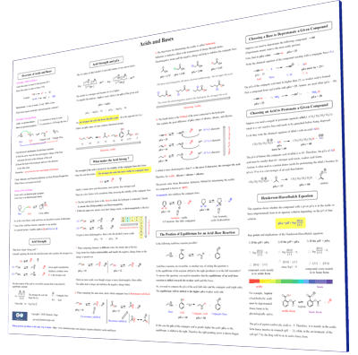 This summary guide will give all you need to know in this essential chapter: Overview of Acids and Bases – Arrhenius, Brønsted, and Lewis acid-base definitions, Acid Strength and the concept of pKa, What makes a Strong Acid and a Base – all the factors discussed in their priority; atoms, charges, resonance, induction, orbitals, aromaticity. The Position of Equilibrium for an Acid-Base Reaction, Choosing an Acid or a Base to protonate and deprotonate a compound, the Henderson-Hasselbalch Equation