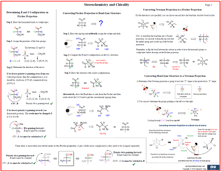 Isomerism, Constitutional and Stereoisomers, Enantiomers and Diastereomers, Chirality, Absolute configuration by the R and S system, R and S in the Fischer projection, Optical Activity, Symmetry and chirality, Meso compounds, R and S configuration of Fischer projections, and an extremely handy graphical summary of converting between Bond-line, Newman, and Fischer projections.